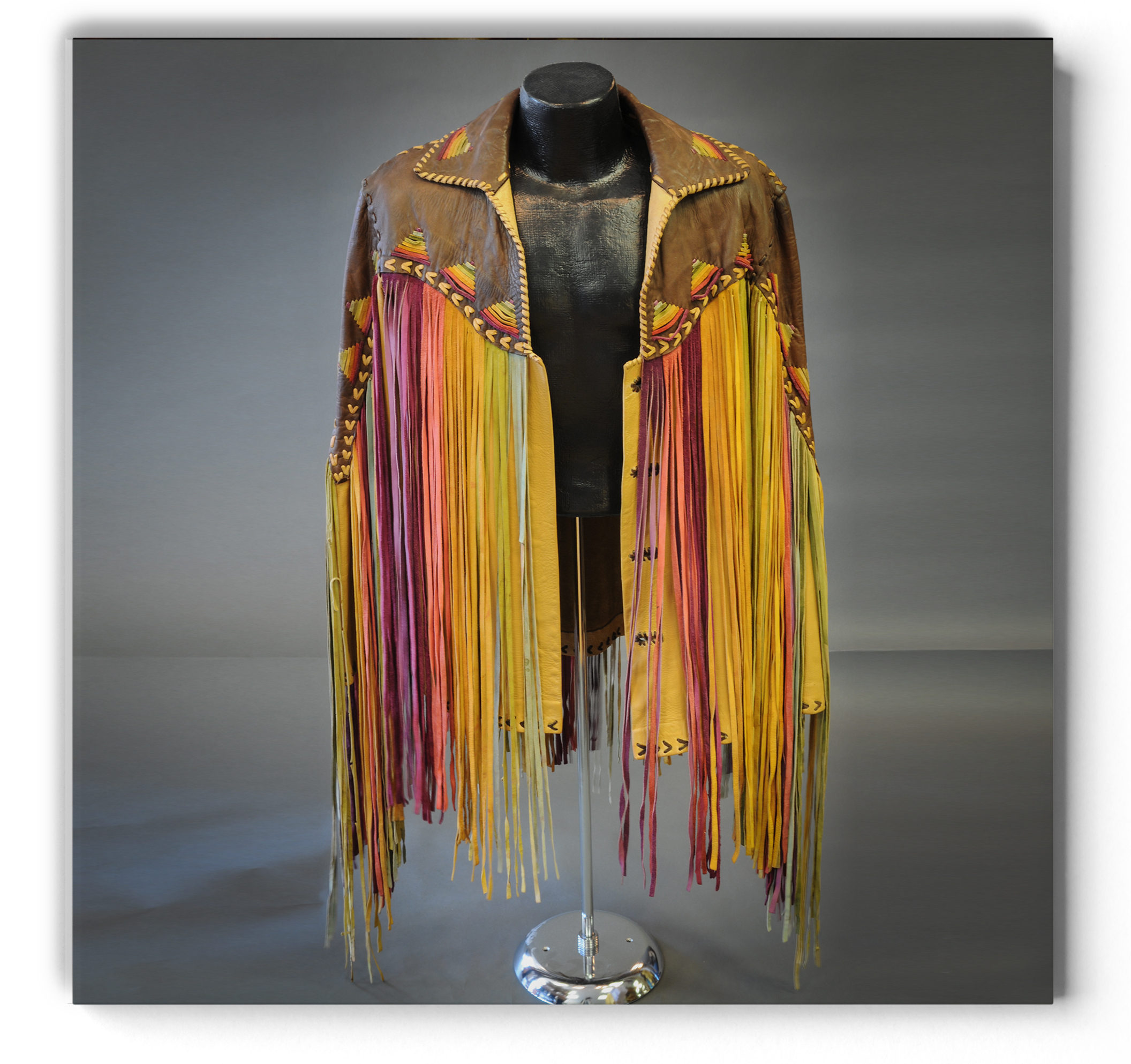 | 2015 Replica Elvis Presley Multi Colored Fringe Rainbow Leather Jacket (SP) |