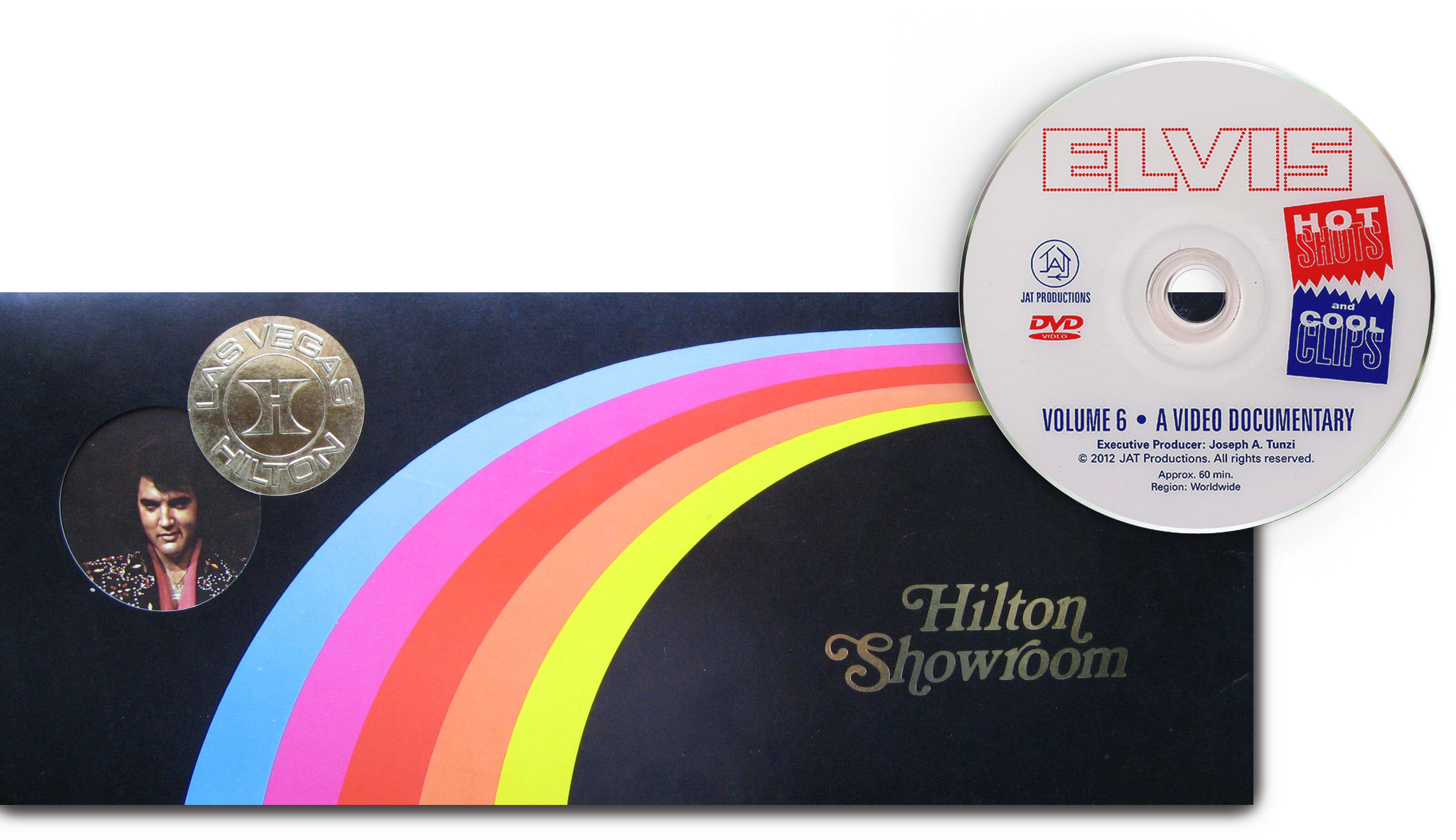 2012 Elvis: Hot Shots And Cool Clips Volume 6 Housed In a Rare Elvis 1975 Hilton Showroom Menu Replica |