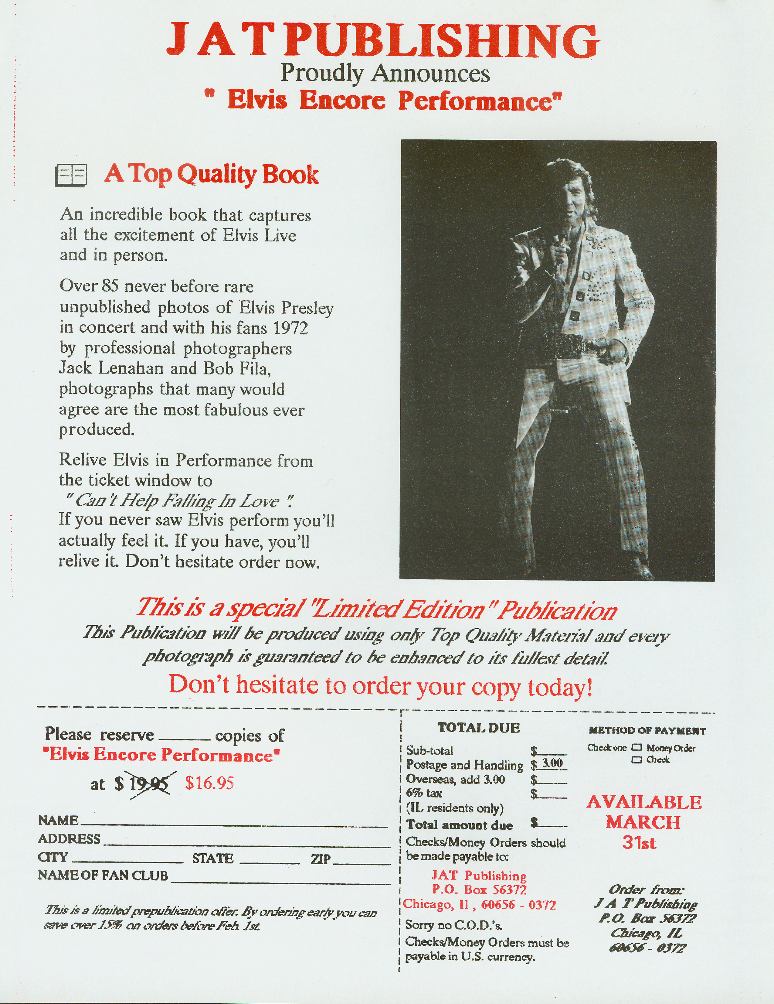 1990 Elvis, Encore Performance: Chicago 1972 Included Reproduction of Front and Back Cover Art |