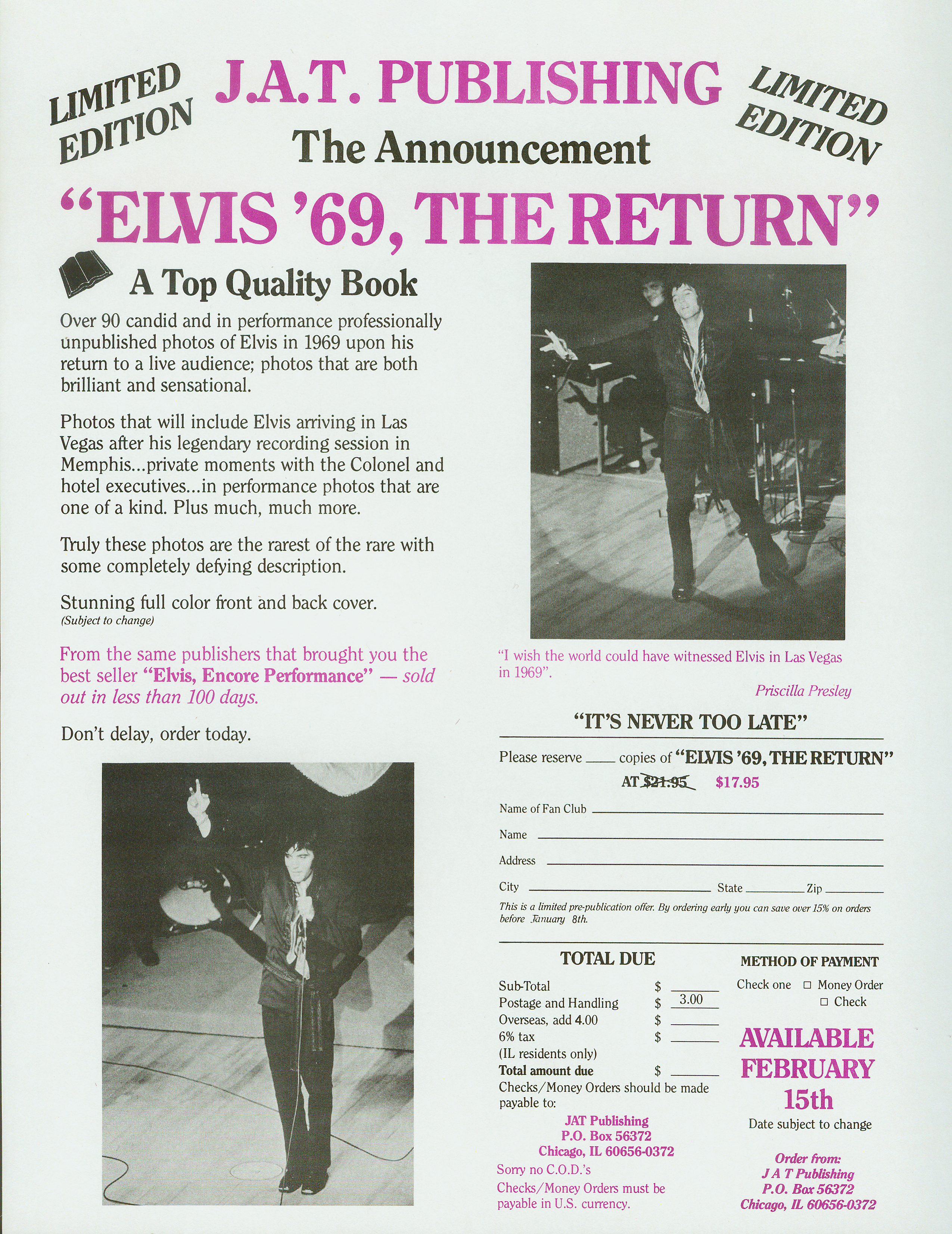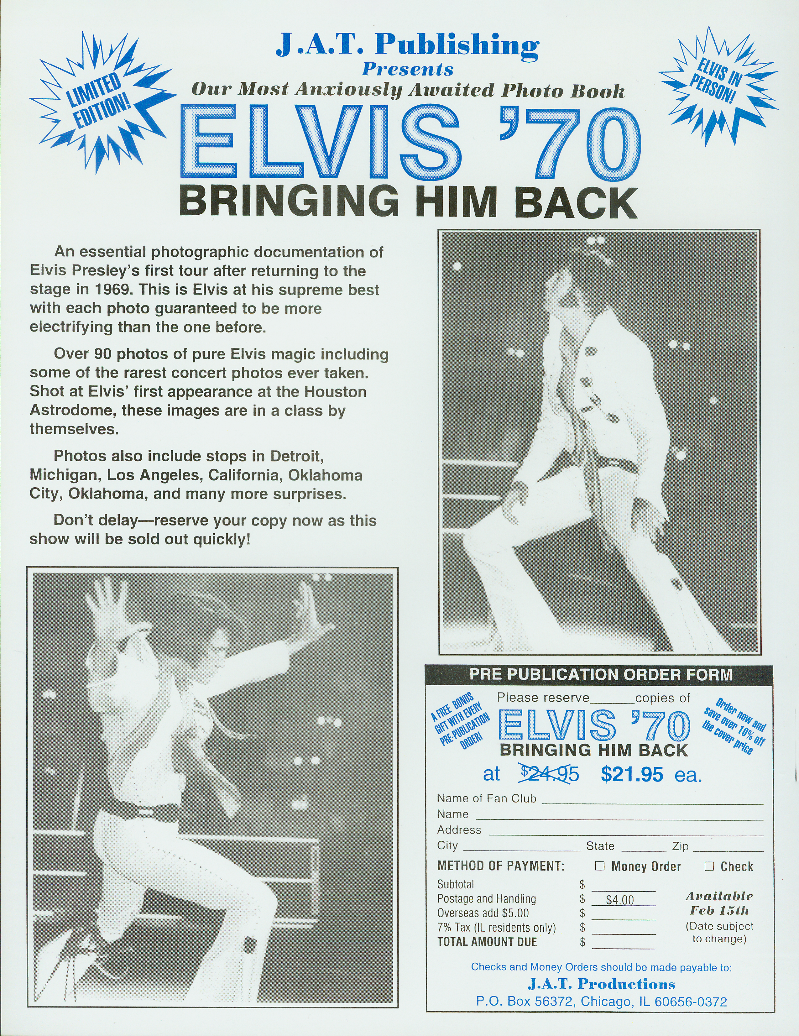 | 1991 Tom Jones with Special Guest, Elvis Presley BOOK: Elvis ‛69, The Return |