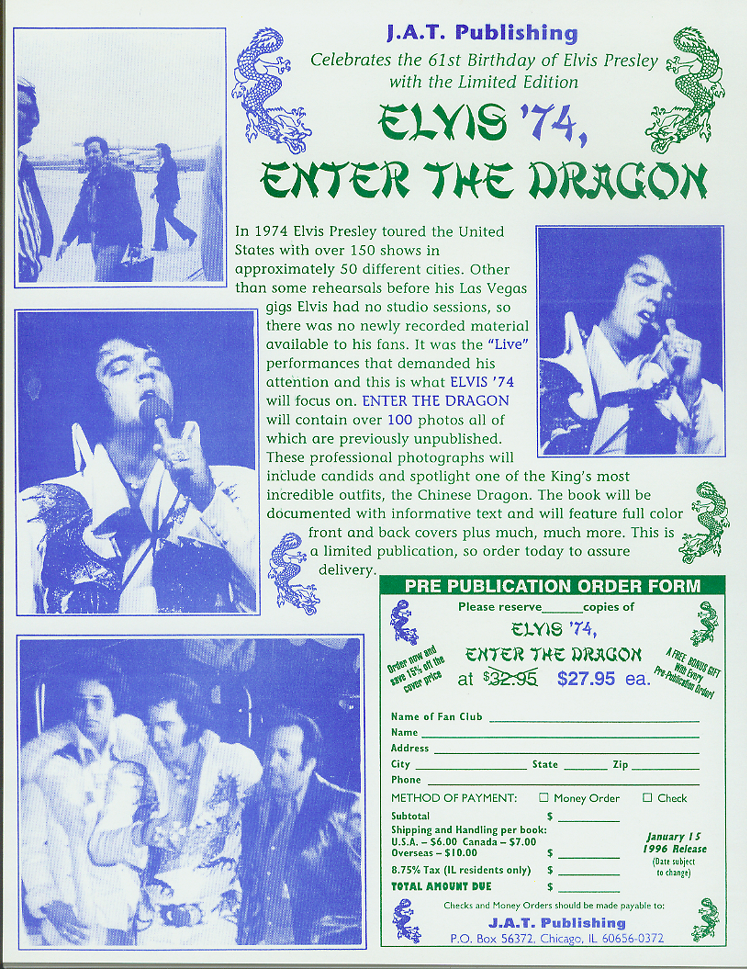 1996 Elvis ‘74 Enter The Dragon Included Reproduction of Front and Back Cover Art |