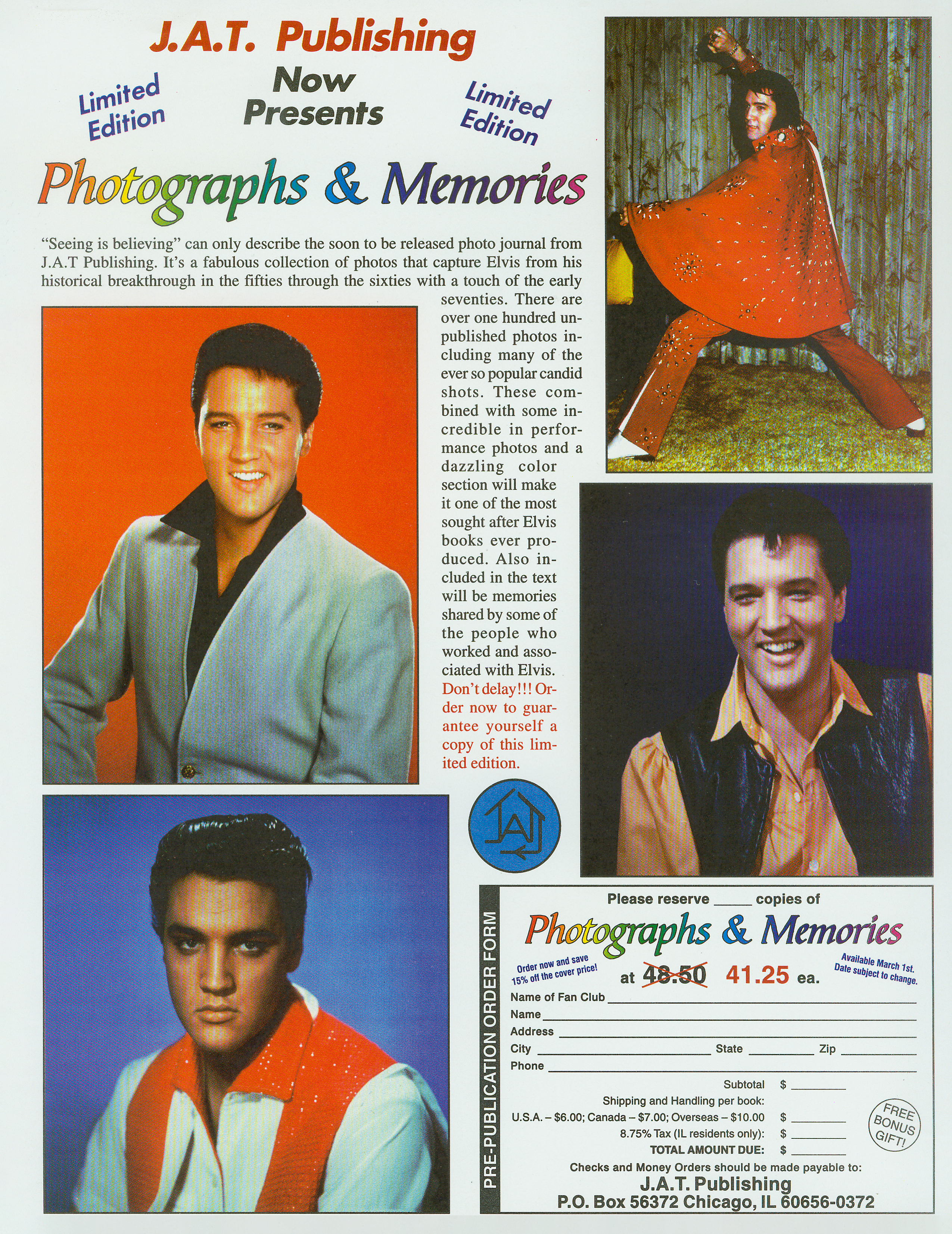 1998 Elvis, Photographs & Memories Included Reproduction of Front and Back Cover Art |
